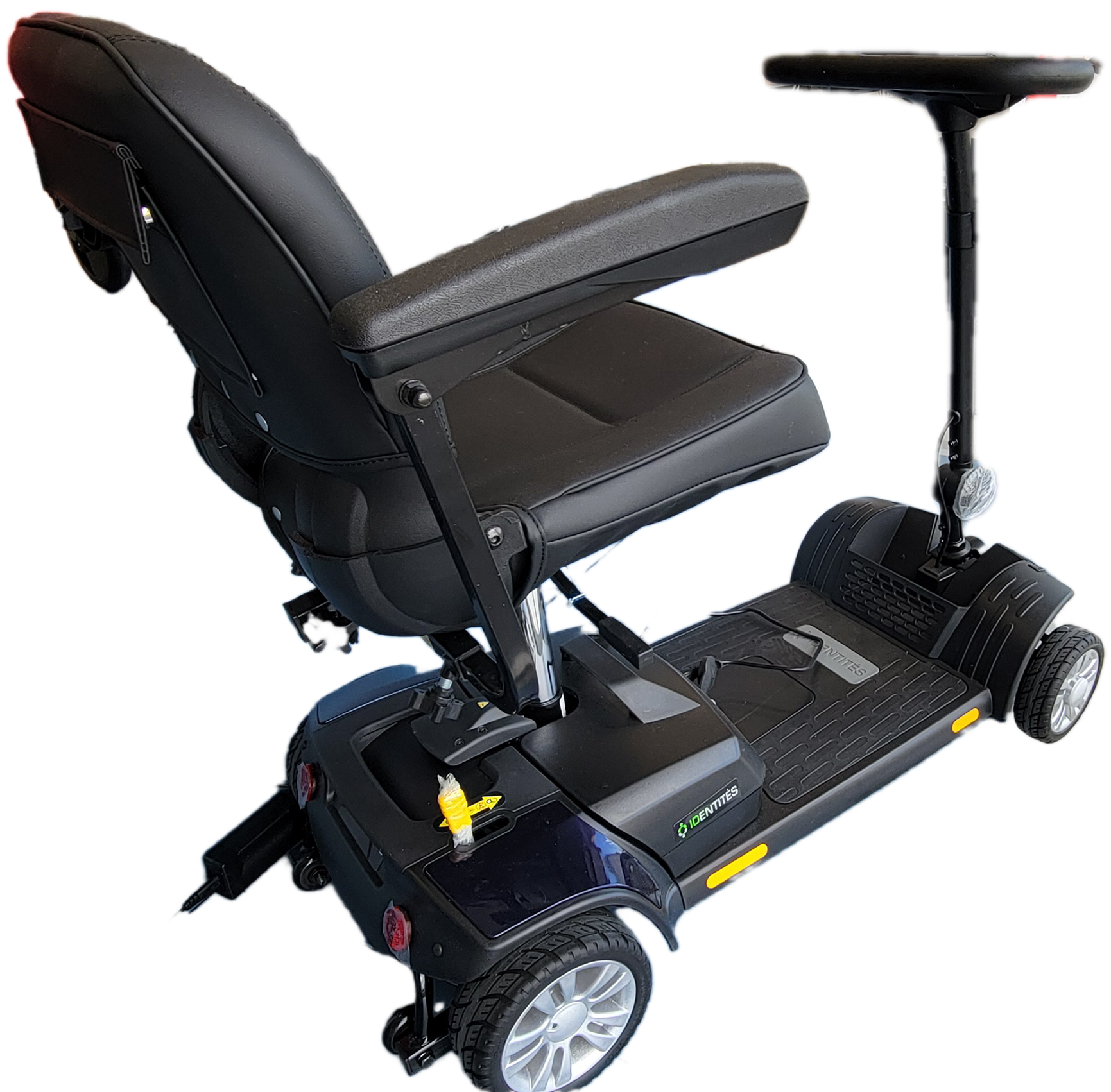 Le Traveler est un scooter 4 roues démontable sans outil en 3 parties (dont batterie démontable rapidement) pour un accès facile dans un coffre de voiture. Siège confort avec accoudoirs relevables et réglables en hauteur. Au tonomie 16 kms. Poids 48 kilos. PRIX PROMO: 1100 euros TTC Livraison offerte (10 kms)